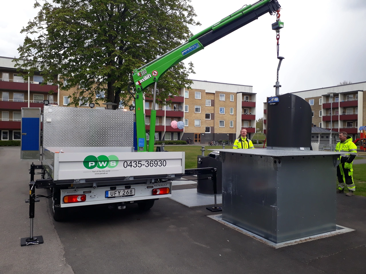 4 hydrauliska utskjut. Lyft och sväng sköts hydrauliskt.